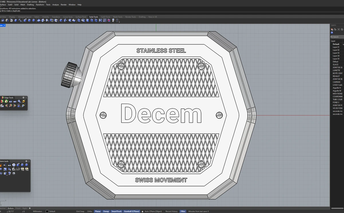 The name Decem comes from the ten angles of the case, Latin for ten.