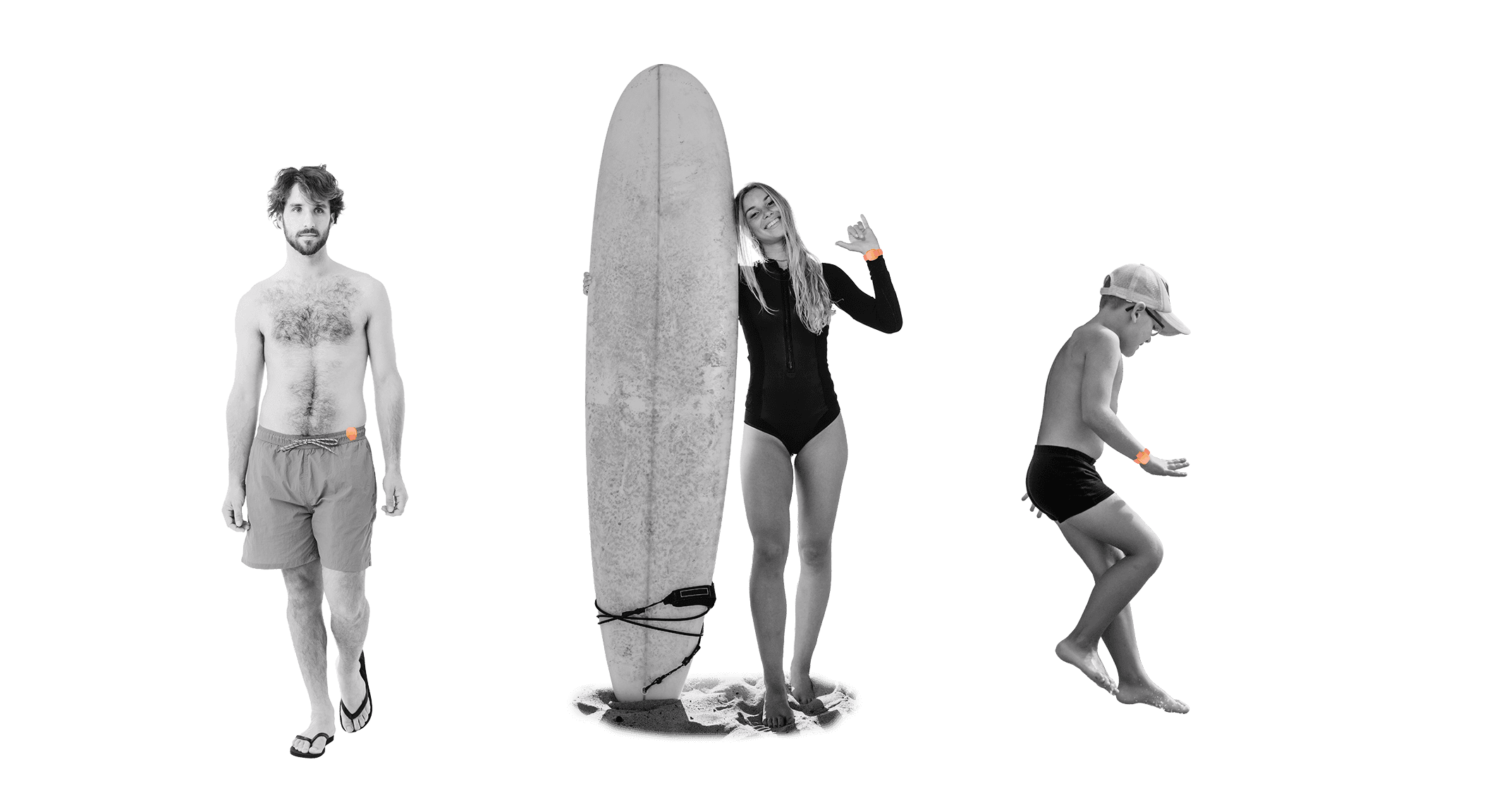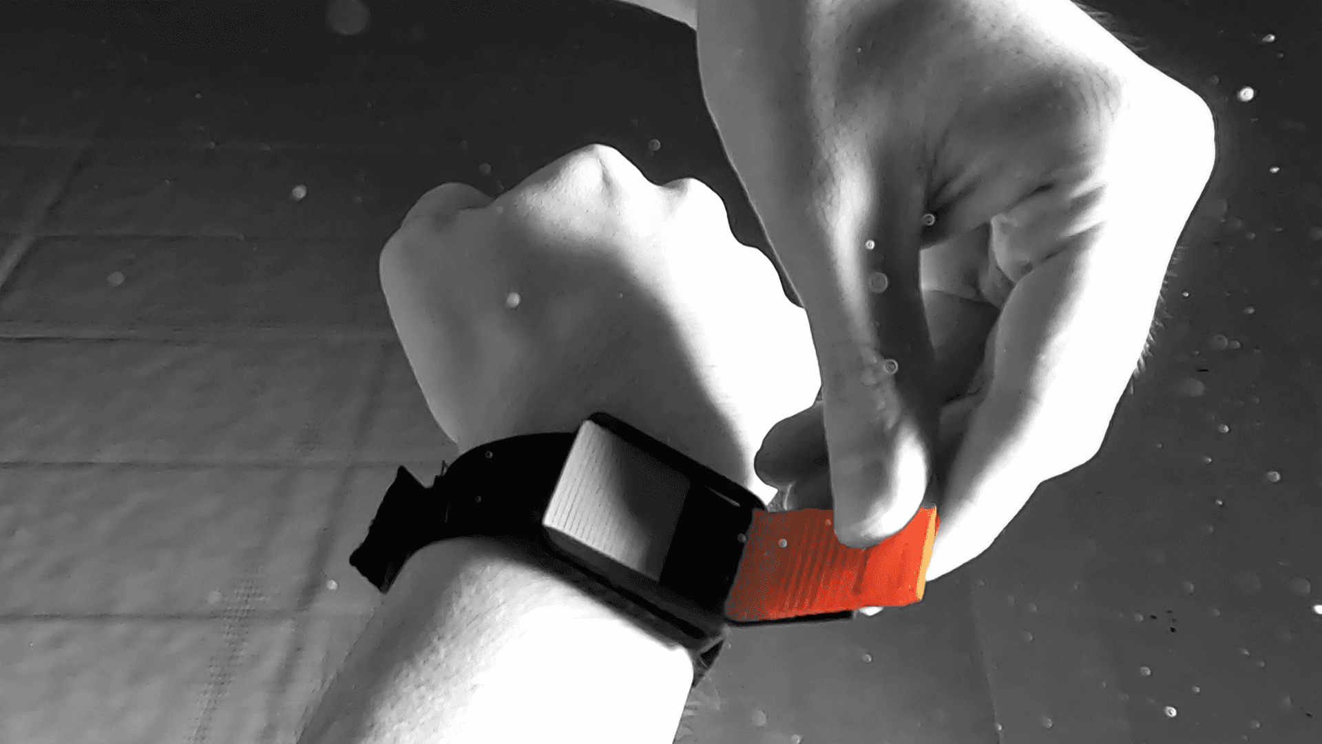 The Rush device can be worn as a clip or wrist strap. As a clip, it attaches securely to your swimsuit to keep the sensor in contact with your skin and the trigger unobstructed. The waterproof strap offers a comfortable, reliable option for aquatic activities.